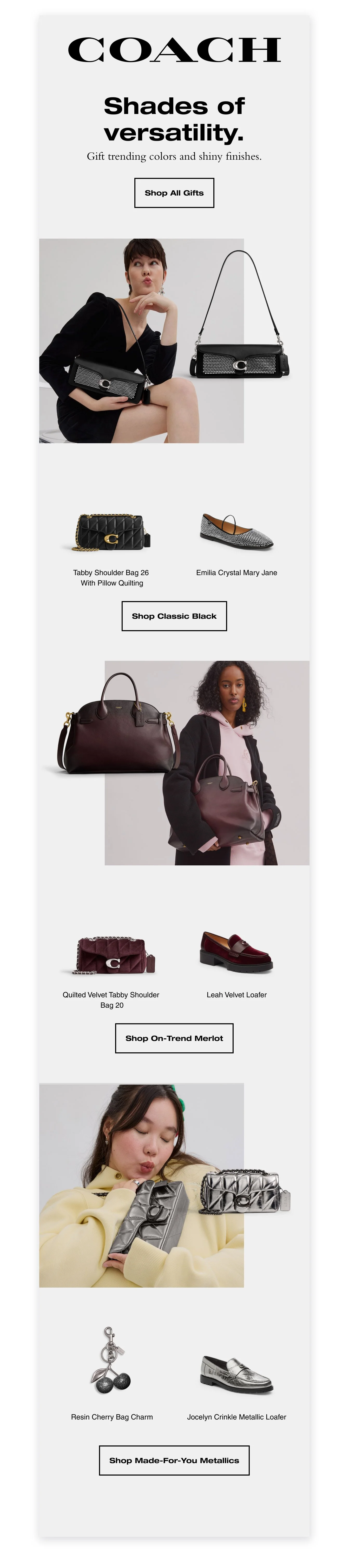 Elevated site, social, email and marketing design for global fashion house with modern layouts and treatment, resulting in beyond benchmark earnings during Black Friday, Cyber Monday.